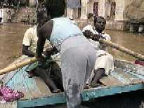 川岸を見ると、濁流で泥水のような水に入って水浴をしている人々が大勢いる。