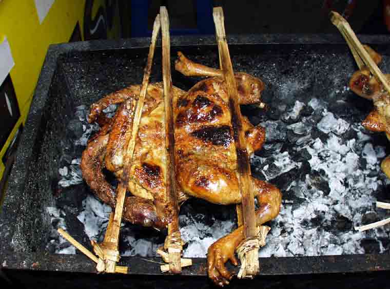 北部タイ料理のひとつ、豪快な鶏の丸焼き。