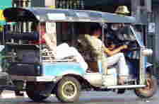軽トラックの荷台に、屋根を付け5〜6人乗りの椅子を両脇に取り付けた赤、または黄色のミニバス。チェンマイ市内のホテルリストを掲載しました。